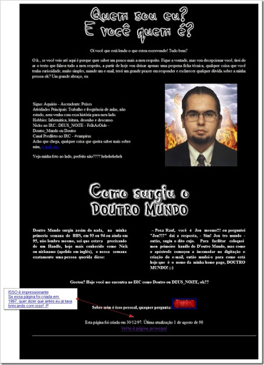 Achei um CD antigo e encontrei uma das primeiras páginas web que eu fiz, a data? 1997! To assustado... olha a figura! :-P